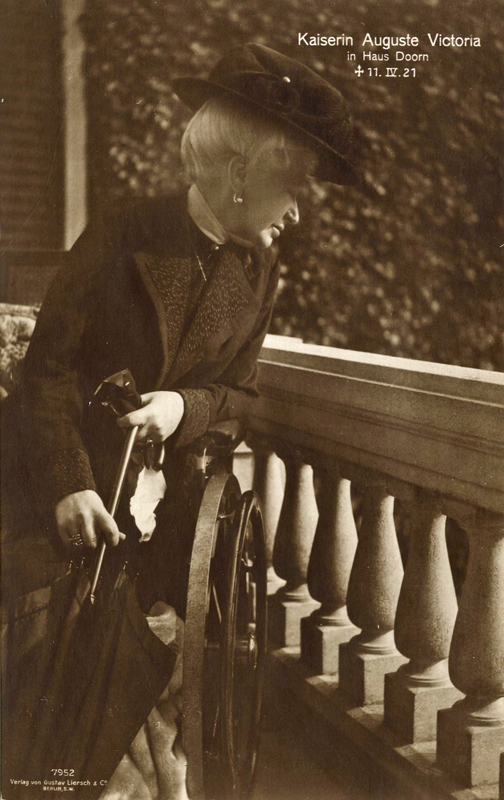 Das Verlassen ihrer Heimat und die Trennung von Kindern und Enkeln war wohl das größte Opfer, das Dona ihrem Mann gebracht hatte. Dass sie nun mehr Privatleute waren, schien ihr hingegen nicht allzu viel auszumachen. Doch gesundheitlich ging es Dona zunehmend schlechter. Sie wurde ein wenig zuversichtlicher, als im Mai 1920 der Umzug in ein eigenes Heim bevorstand: Schloss Doorn, das der ehemalige Kaiser im Vorjahr gekauft hatte. In einer „Hütte bei Wasser und Brot“ würde man also nicht leben müssen. Doch ihre Hoffnungen erfüllten sich nicht. Dona war schwerkrank. Ihre Herzanfälle wiederholten sich in immer kürzeren Abständen, sie konnte keine Treppen mehr steigen, musste hinauf- und hinuntergetragen werden und war zunehmend auf den Rollstuhl angewiesen. „Sie leidet namenlos“, heißt es im Tagebuch ihrer Hofdame Gräfin Keller, „und es schneidet einem ins Herz zu sehen, wie sich die Leiden immer tiefer in die geliebten Züge eintragen.“ Nur Wilhelm schien nicht zu merken, wie schlecht es um seine Frau stand. Kurze Zeit später erlitt Dona einen erneuten Schlaganfall, der sie der Sprache und Bewegungsfähigkeit beraubte. Wochenlang musste sie das Bett hüten, und als es ihr wieder ein klein wenig besser ging, erreichte sie die Schreckensnachricht, dass Joachim, ihr jüngster Sohn, „an Schussverletzungen“ gestorben sei.