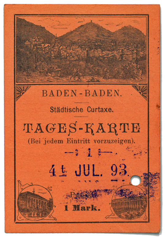 Nach der Ankunft im Hotel besorgte man sich eine Kurkarte, mit der man das Kurhaus und den Kurgarten besuchen und alle weiteren Vergnügungen nutzen durfte. So sah sie aus: