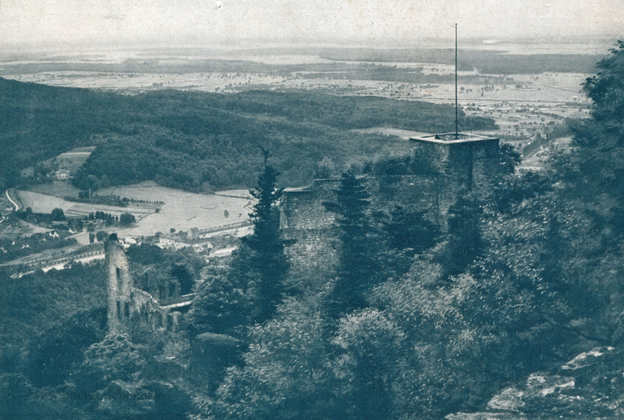 Das Schloss als Stammsitz des Badener Geschlechts ist schon lange als Ruine zu besichtigen. Bis zur Verlegung der Residenz in das (nun ja) Neue Schloss im späten 15. Jahrhundert war es die Residenz der Markgrafen von Baden. Anschließend war es zunächst Witwensitz. 1599 wurde das Schloss bei einem Brand zerstört. Danach versank es in einen Dornröschenschlaf – die Ruine wurde erst am Anfang des 19. Jahrhundert baulich gesichert. Seitdem ist sie ein beliebtes Ausflugsziel, in unserem Reiseführer von 1913 wird die Ruine mit einer Tour auf den Battert, 565 Meter hoch, verbunden. Zur Ruine heißt es: