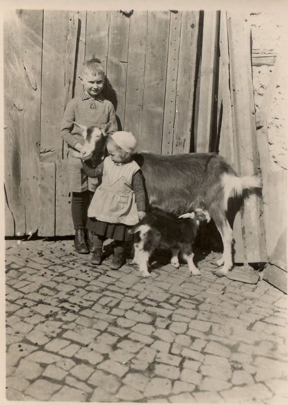 Nach Walter (Jg. 1929) kam sechs Jahre (Jg. 1935) später meine Schwester Ruth zur Welt. Meine Mutter arbeitete von früh bis spät und die Schwangerschaften verliefen mehr oder weniger nebenbei. Die Arbeit im Haushalt und auf dem Feld musste trotzdem erledigt werden. Die Kinder wurden mitgenommen oder unsere Großeltern mütterlicherseits passten auf uns auf – im Sinne von, es war noch jemand auf dem Hof außer uns. Im Umgang war insbesondere Großmutter eher ruppig. Gehorchten wir nicht, konnte es z.B. passieren, dass sie uns wütend zurief: „Ich tret Dich in den Ursch, dass Du übers Schinddach flehst (Ich trete Dich in den Arsch, dass Du über’s Scheunendach fliegst). Das war allerdings eine eher lustige Vorstellung, war Großmutter doch winzig und ihr Rücken vom vielen Arbeiten und von der Erkrankung Bechterew gebeugt war. Aber das war viel später…