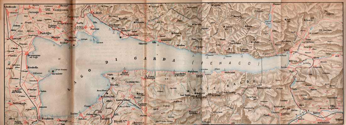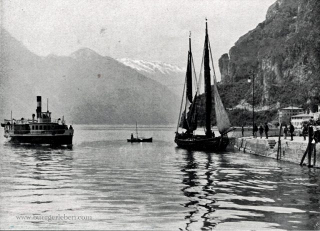 Dank des Ausbaus der Verkehrswege über die Alpen kamen immer mehr Menschen in den Genuss eines Kurlaubes am Gardasee. Die Eisenbahn brachte sie rasch und preiswert an ihr Ziel. 1864 begannen die Arbeiten zum Bau der Brennerbahn, die den Alpenhauptkamm zwischen Innsbruck und Bozen überqueren sollte. Die anspruchsvolle Strecke, die 800 Höhenmeter in kurzer Distanz mit Hilfe von Brücken und Tunneln überwinden musste, war bereits 1867 fertig gestellt. Nun gab es endlich eine gefahrlose und kurze Verbindung zwischen den Gebieten diesseits und jenseits der Alpen. Durch die Eisenbahnlinien Verona-Trient/Trient-Bozen, die bereits seit 1858/59 bestanden, hatte der Reisende aus dem Norden Anschluss für seine Weiterfahrt nach Oberitalien. Über die Bahnstationen Rovereto und Mori ließ sich fortan das Nordufer des Sees leicht erreichen. Noch bequemer wurde die Anfahrt, nachdem 1891 von Mori ausgehend eine schmalspurige Lokalbahn in die Nobelorte Arco und Riva eingerichtet worden war.