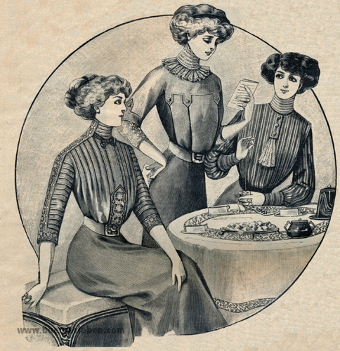 Um beim Kaffeeklatsch zu bleiben, der in allen bürgerlichen Schichten beliebt und im übrigen damals schon gefürchtet war! So heißt es in einem Ratgeber-Artikel zur „Kaffeegesellschaft“ in den praktischen Mitteilungen der Sonntagszeitung von 1911 (neben der noch heute aktuellen Frage „Wo blieb das Geld?“ als Werbung für ein Wirtschaftsbuch zum Eintragen der Ein- und Ausgaben):