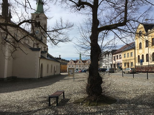 Man kann übrigens in der Gegend nicht nur idyllische Friedhöfe anschauen, sondern auch in der etwas wilden Mittelgebirgslandschaft wandern, in den benachbarten Ort Kasperke Hory fahren, den schönen Marktplatz dort anschauen und sich dann draußen in ein Lokal setzen, dass uns durch seinen leicht herben Hopfenduft neugierig machte und das dort gebraute Bier trinken. Oder Kaffee und dazu den leckeren Schoko-Malzkuchen probieren. Und noch vieles mehr unternehmen, zu dem wir leider keine mehr Zeit hatten…