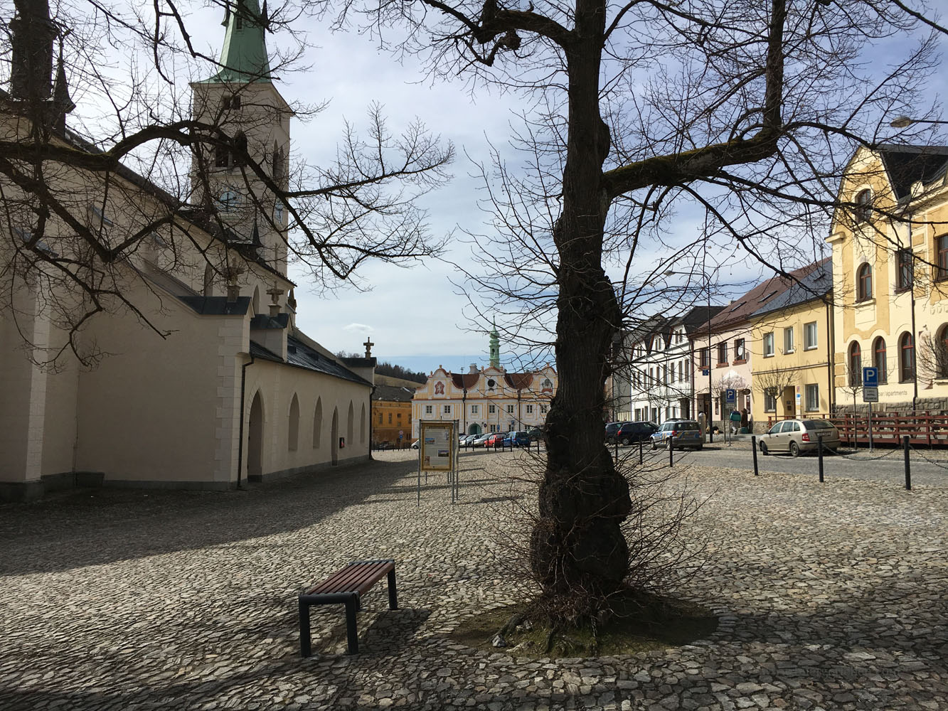 Der Grabstein mit diesem Spruch war mir zusammen mit dem alten romantischen Friedhof von einer Urlaubswanderung in meiner Kindheit in Erinnerung geblieben. An den Ortsnamen Rejstein, früher Unterreichenstein, konnte ich mich noch erinnern. Bei einer Stippvisite im Böhmerwald auf dem Weg nach Prag besuchte ihn ich wieder, dieses Mal mit meiner Familie. Rejstein war noch ähnlich verschlafen. Die meist alten Häuser hatten inzwischen leuchtendere Farben, die aber teilweise schon wieder abblätterten. Aber ich mag diesen verblassenden Charme. Auf einem Schild stand, dass sich Rejstein seit 2007 wieder als Stadt bezeichnen darf. Der Ort hat ca. 300 Einwohner, drei Pensionen und liegt immer noch zwischen zwei den zwei idyllisch plätschernden Flüssen Otava und Losnitz
