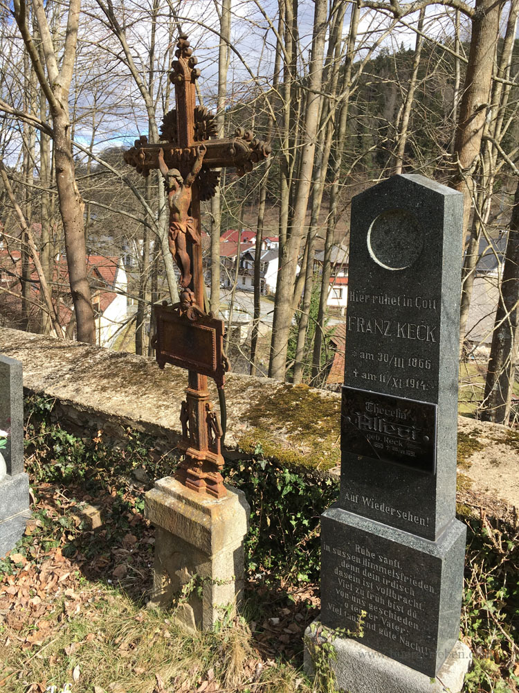 Dies steht auf dem Grab von Franz Keck, welcher 1914 mit 58 Jahren verstarb und so von seiner Tochter betrauert wurde, die ihm 1931 folgte und im gleichen Grab liegt.