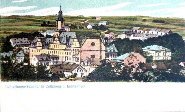 Die Eröffnung des Lehrerinnenseminars zu Callnberg erfolgte am 20.10.1856. Zudem wurde eine neue Seminarübungsschule errichtet, an der die angehenden Lehrerinnen ihre Fähigkeiten unter Beweis stellen mussten. Hierzu wurden normale Schüler aus Callnberg unterrichtet.