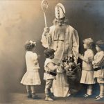 Kindern aber niemals ohne Begleitung des heiligen Nikolaus im Bischofsornat, der mit seinem rotgefärbten Wachsgesicht