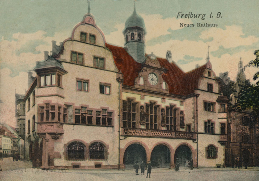 Die Stadt besteht aus der Altstadt, die vielfach noch mittelalterlichen Charakter trägt und z. T. enge, krumme, von klaren Bächlein durchflossene Straßen hat, aus den Vorstädten Wiehre und dem eleganten Herdern, dem Stadtteil Stühlinger und den Vororten Güntersthal und Haslach. Von den alten Stadttoren sind noch das 1901 stilgerecht renovierte Martins- und das Schwabentor vorhanden. Unter den kirchlichen Gebäuden (4 evangelische, 8 katholische, eine altkatholische, eine engl. Kirche und eine Synagoge) nimmt das Münster, jetzt erzbischöfliche Kathedrale, den ersten Rang ein. Dasselbe ist ein Meisterwerk gotischer Baukunst, wenn auch seine einzelnen Teile verschiedenen Zeiten angehören.