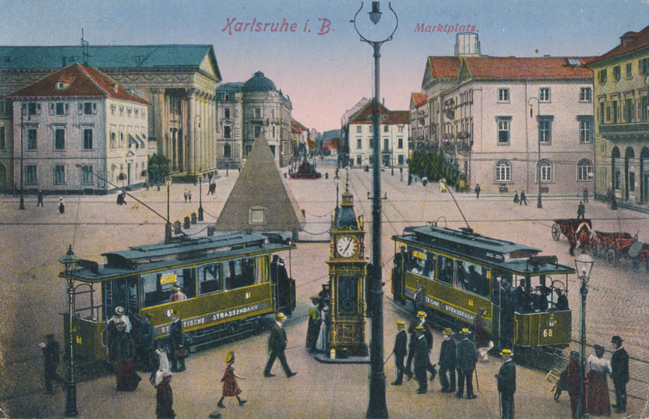 Mit 134.000 Einwohnern war die Hauptstadt von Baden neben Mannheim einer der beiden Großstädte in Baden. Über die Entstehung von Karlsruhe hatten wir schon im Geschichtsteil berichtet. Als auf dem Reißbrett geplante Stadt war sie fächerförmig angelegt – mit dem Schloß im Zentrum. Als Residenzstadt war Karlsruhe Sitz der Regierung „mit zahlreichen Staats- und Hofbehörden“ und gleichzeitig Hauptwohnsitz der großherzoglichen Familie. Die Industrie prosperierte auch hier: