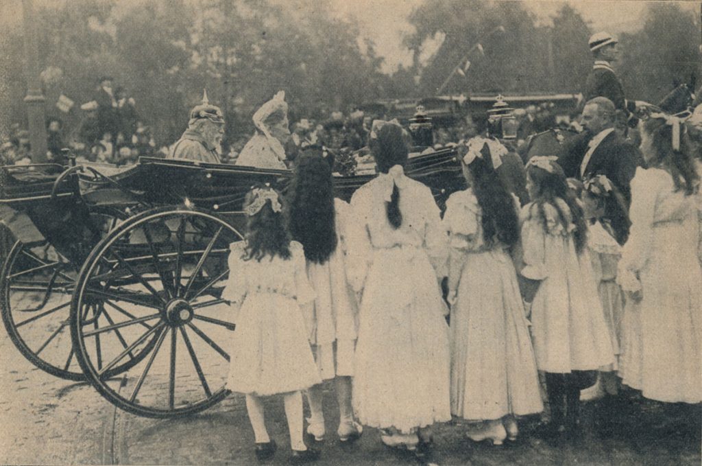 Bilder von den Festtagen anläßlich der goldenen Hochzeit und dem 80. Geburtstag von Friedrich I. 1906 in Karlsruhe. Dazu gab es eine landwirtschaftliche Ausstellung, die von Friedrich I. eröffnet wurde. Aus allen Teilen Badens kamen Einwohner zu diesem Fest.