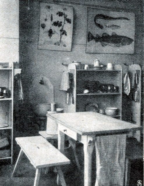 Ob nun modern oder traditionell, was sicherlich auch eine Frage des Einrichtungsbudgets war. Auch zum Unterricht gehörte der unvermeidliche Abwasch, denn Spülmaschinen waren zu jener Zeit noch nicht unter den „modernen Kücheneinrichtungen“ zu finden: