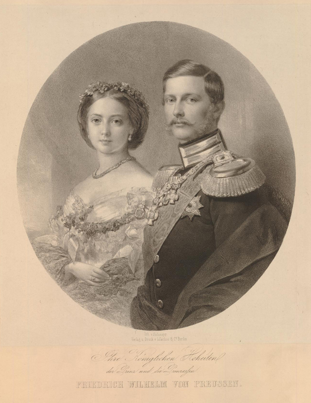 Im Jahr 1848 traf unerwarteter Besuch am englischen Königshof ein: Preußens Kronprinz Wilhelm, der Berlin in Folge der Revolution fluchtartig hatte verlassen müssen. In London wurde er freundlich aufgenommen. Hier entstand der Plan, beide Länder enger miteinander zu verbinden und Preußen zum „Motor“ eines künftig geeinten liberalen Deutschlands zu machen. Da war es natürlich naheliegend, die ins Auge gefasste Allianz mit einem Heiratsprojekt zu untermauern: Auch wenn Vicky noch ein Kind war, so sollte sie in einigen Jahren den Sohn des preußischen Kronprinzen heiraten, den 1831 geborenen Friedrich Wilhelm, genannt Fritz.