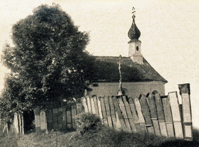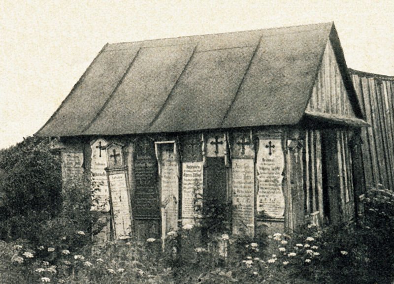 Ähnlichkeit haben manche Leichenbretter übrigens mit den „Marterln“ – wie es auch im Text heißt: „das kleine giebelige Schutzdach, das über dem Brett angebracht ist, und das auf einzelnen unserer Bilder zu erkennen ist, ferner die grellen Farben…