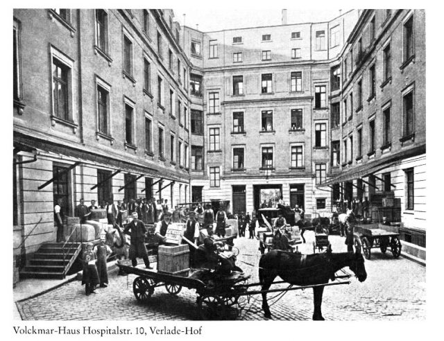 „Als ich das erste Mal in Leipzig war, ging ich voll Ehrfurcht an den großen Verlagshäusern vorbei, über deren Toreinfahrten so berühmte Namen standen wie F.A. Brockhaus, Bernhard Tauchnitz, Philipp Reclam junior, Breitkopf & Härtel … B.G. Teubner … Die Gebäude der großen Druckereien und Bindereien umfaßten riesige Häuserblocks … Die Firmen Brandstetter, Spamer, Bibliographisches Institut, Fikentscher, Enders, Hübel & Denk, Haag-Drugulin und viele andere arbeiteten mit idealer Pünktlichkeit und Exaktheit.“
