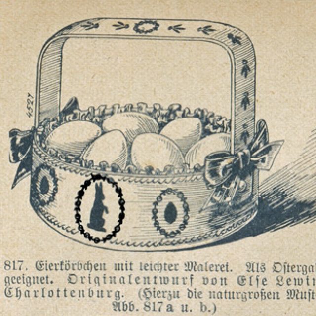 Zur Geschichte unserer Motive (schließlich sind wir hier ja bei Bürgerleben): Sie wurden in einem Artikel im März 1908 in einer damaligen Wochenzeitschrift veröffentlicht und zwar ursprünglich zum Bemalen von –richtig, Osterkörbchen.