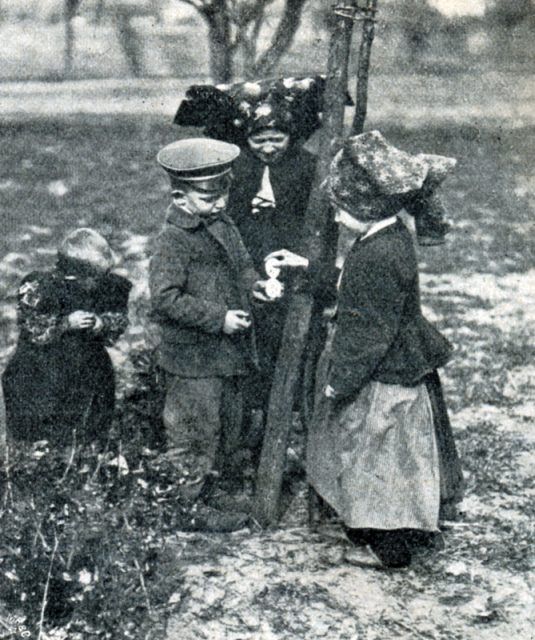 So hat die Sitte des Ostereierschenkens zu einer förmlichen Osterindustrie geführt, und in allen Häusern, wo Kinder sind, werden von geschickten und spendefreudigen Händen auch Ostergeschenke gemacht.“