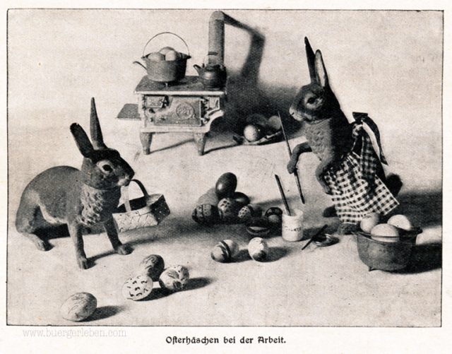 Die Kommerzialisierung von Ostern wurde übrigens schon in der Kaiserzeit beklagt, in einer Ausgabe der Mädchenzeitschrift „Kränzchen“ von 1910 heißt es dazu: