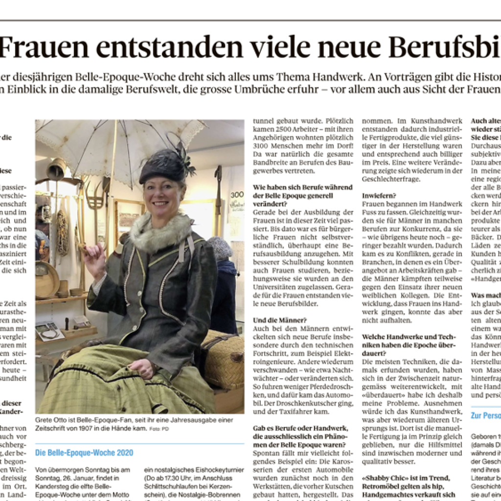 Anlass für dieses Interview war die alljährlich stattfindende Belle Époque Woche, in der ich zwei Vorträge zu den Themen „Handwerk“ und „Bürgerliche Frauen im Berufsleben“ hielt.
