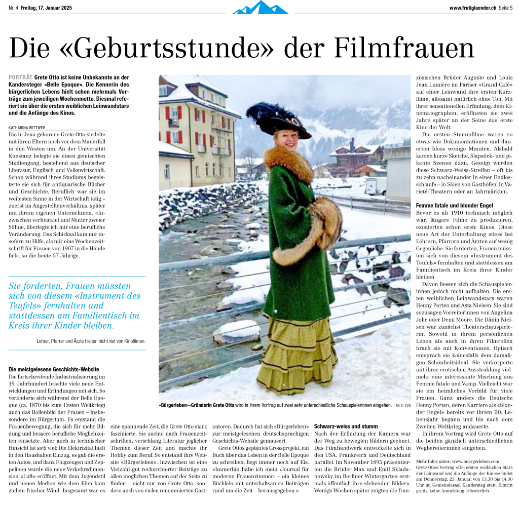 Zeitung „Der Frutigländer“ (17.1.25) – Die „Geburtsstunde der Filmfrauen“