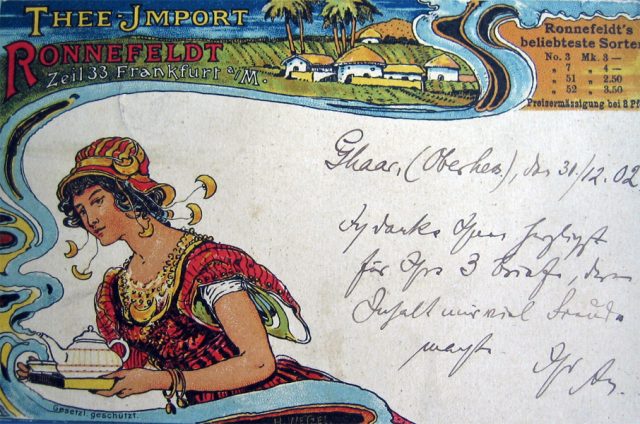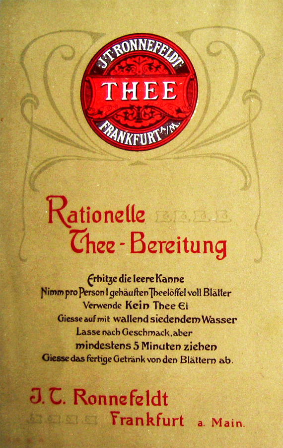 Eine Werbung, die ich in alten Zeitschriften immer wieder entdeckt habe – T(h)ee der Firma Ronnefeldt – so wurde Tee bis in die ersten Jahre des 20. Jahrhunderts noch geschrieben.