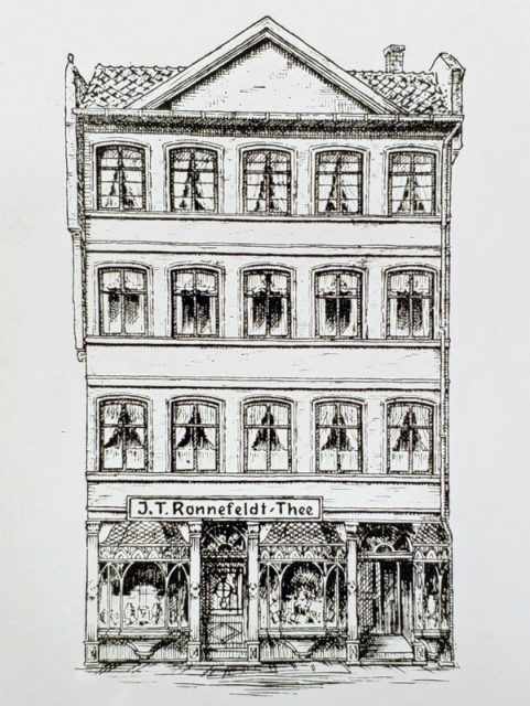 Anfang des 20. Jahrhunderts ist Ronnefeldt als Teemarke etabliert. In der Stadt Frankfurt ist man ab 1884 in einem großen Haus auf der Zeil präsent. Von diesem Standort zieht das Unternehmen 1904 wegen des Neubaus eines großen Kaufhauses an den Roßmarkt in das Haus „Goldener Brunnen“. Dort hatte eine bekannte Persönlichkeit ihre letzten Lebensjahre verbracht: Frau Rat Goethe – Goethes Mutter.
