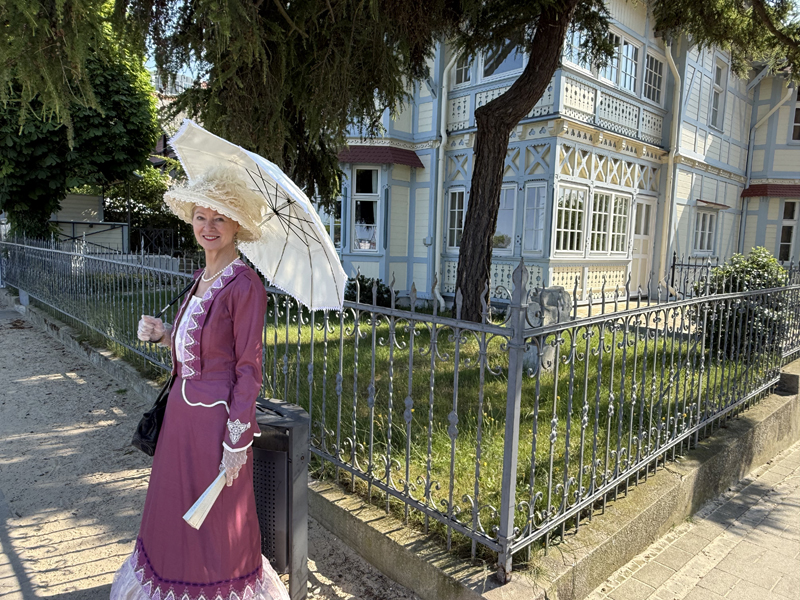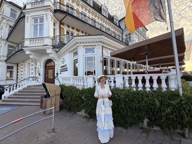 Ich sitze bei einem Kaffee auf der Terrasse des Ahlbecker Hofs, vor mir die Strandpromenade und schließe kurz die Augen. Ich spüre die Seeluft vom Meer, höre die Pferdehufe vorbeifahrender Kutschen klappern, schaue den eleganten Damen in hellen langen Sommerkleidern nach, die alleine, zu zweit, von Kindern oder Herren im Sommeranzug begleitet werden.