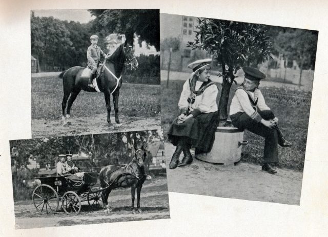Das Dorf lag im damaligen Westpreußen in der Nähe von Danzig, heutiges polnisches Territorium. 1898 hatte der Kaiser das Landgut von seinem überschuldeten Besitzer übernommen.[/vc_column_text][/vc_column][/vc_row][vc_row][vc_column][mk_padding_divider][mk_image src=“https://www.buergerleben.com/wp-content/uploads/2020/08/sommeraufenthalt-der-deutschen-kaiserfamilie-cadinen-s.2_wohnhaus-der-kaiserlichen-familie-kopie.jpg“ image_size=“medium“ lightbox=“true“ title=“Der kaiserliche Landsitz“ caption_location=“outside-image“ align=“center“][mk_padding_divider][/vc_column][/vc_row][vc_row][vc_column][mk_padding_divider][mk_image src=“https://www.buergerleben.com/wp-content/uploads/2020/08/sommeraufenthalt-der-deutschen-kaiserfamilie-cadinen-s.11_garten-mit-wohnhaus.jpg“ image_size=“medium“ lightbox=“true“ title=“Blick durch die Allee zum Landsitz“ caption_location=“outside-image“ align=“center“][mk_padding_divider][/vc_column][/vc_row][vc_row id=“nobel“][vc_column][vc_column_text css=“.vc_custom_1597676492572{margin-bottom: 0px !important;}“]Wilhelm II. ließ es ausbauen und nach und nach auch gleich das ganze Dorf umgestalten.[/vc_column_text][/vc_column][/vc_row][vc_row][vc_column][mk_padding_divider][/vc_column][/vc_row][vc_row][vc_column][vc_media_grid style=“pagination“ items_per_page=“1″ element_width=“12″ gap=“35″ arrows_design=“vc_arrow-icon-arrow_12_left“ arrows_color=“grey“ paging_design=“point_dots“ paging_color=“sandy_brown“ item=“masonryMedia_ScaleWithContentBlock“ initial_loading_animation=“none“ grid_id=“vc_gid:1661358049187-63e2c67a-dbf6-3″ include=“11787,11796,11790″][/vc_column][/vc_row][vc_row][vc_column][mk_padding_divider][/vc_column][/vc_row][vc_row id=“nobel“][vc_column][vc_column_text css=“.vc_custom_1597677357338{margin-bottom: 0px !important;}“]Die Ziegelei auf dem Gutsgelände wurde in eine Majolika-Manufaktur ausgebaut, deren Fliesen z.B. beim Bau von Berliner U-Bahnhöfen und dem Hamburger Elbtunnel eingesetzt wurden. Daneben wurde ein Gestüt gegründet, in dem Trakehner und Holsteiner gezüchtet wurden.[/vc_column_text][/vc_column][/vc_row][vc_row][vc_column][mk_padding_divider][mk_image src=“https://www.buergerleben.com/wp-content/uploads/2020/08/sommeraufenthalt-der-deutschen-kaiserfamilie-cadinen-s.14_marstall.jpg“ image_size=“medium“ lightbox=“true“ title=“Der Marstall für die Pferdezucht“ caption_location=“outside-image“ align=“center“][mk_padding_divider][/vc_column][/vc_row][vc_row][vc_column][vc_column_text css=“.vc_custom_1597677594145{margin-bottom: 0px !important;}“]Die Bilder aus dem Ferienalbum sind von 1903 als alles noch recht ursprünglich war und die Umgestaltung erst begonnen hatte. „Kaisers“ ließen sich „ganz privat“ bei ihren Sommerfrische-Aktivitäten ablichten.[/vc_column_text][/vc_column][/vc_row][vc_row][vc_column][mk_padding_divider][/vc_column][/vc_row][vc_row][vc_column][vc_media_grid style=“pagination“ items_per_page=“1″ element_width=“12″ gap=“35″ arrows_design=“vc_arrow-icon-arrow_12_left“ arrows_color=“grey“ paging_design=“point_dots“ paging_color=“sandy_brown“ item=“masonryMedia_ScaleWithContentBlock“ initial_loading_animation=“none“ grid_id=“vc_gid:1661358049189-7af94ba7-2f64-8″ include=“11782,11800,11792,11783″][/vc_column][/vc_row][vc_row][vc_column][mk_padding_divider][/vc_column][/vc_row][vc_row][vc_column][vc_column_text css=“.vc_custom_1597742489593{margin-bottom: 0px !important;}“]Besonders beliebt bei den Untertanen – Aufnahmen der Kinder:[/vc_column_text][/vc_column][/vc_row][vc_row][vc_column][mk_padding_divider][mk_image src=“https://www.buergerleben.com/wp-content/uploads/2020/08/sommeraufenthalt-der-deutschen-kaiserfamilie-cadinen-s.17_prinz-joachim-und-prinzessin-victoria-luise.jpg“ image_size=“medium“ lightbox=“true“ title=“Im obligatorischen „Ferien-Dress„ Matrosenanzug: Prinzessin Victoria Luise, 10 Jahre alt und ihr Bruder Joachim, der 6. Sohn des Kaiserpaares, zu dieser Zeit 12 Jahre alt“ caption_location=“outside-image“ align=“center“][mk_padding_divider][/vc_column][/vc_row][vc_row][vc_column][mk_padding_divider][mk_image src=“https://www.buergerleben.com/wp-content/uploads/2020/08/sommeraufenthalt-der-deutschen-kaiserfamilie-cadinen-s.7_prinzessin-victorkia-luise-mit-ihren-lieblingen.jpg“ image_size=“medium“ lightbox=“true“ title=“Prinzessin Victoria Luise – das Nesthäkchen“ caption_location=“outside-image“ align=“center“][mk_padding_divider][/vc_column][/vc_row][vc_row][vc_column][vc_column_text css=“.vc_custom_1597678339153{margin-bottom: 0px !important;}“]Eine Reihe von Aufnahmen sollen die Volksnähe der kaiserlichen Familie illustrieren. Man war im Dorf integriert – so die Aussage der Bilder: