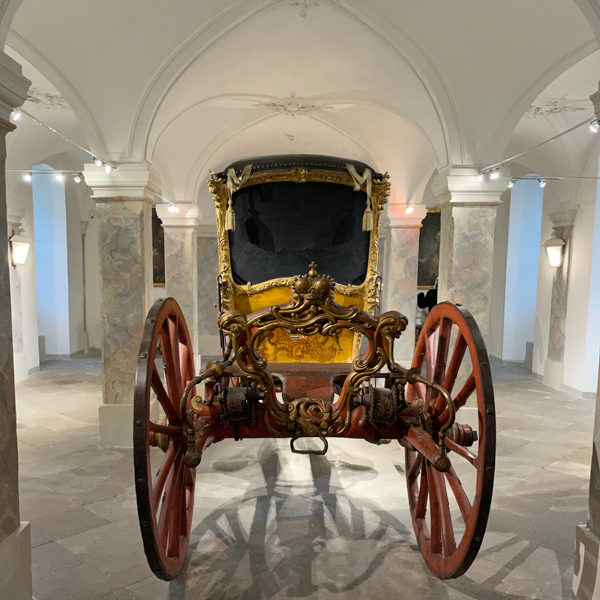 Die Räume sind mit Möbeln, Gemälden und Porzellan stilecht eingerichtet, neben repräsentativen Zimmern sind auch private Bereiche wie die Schlafzimmer zu besichtigen – Herren- und Damentrakt waren dabei getrennt. Ein Highlight (im Bild) am Anfang: die sehr gut erhaltene repräsentative Kutsche mit Lederfederung – für eine Reise ins ca. 100 km entfernte Frankfurt hätte man mit ihr übrigens ca. 2 1/2 Tage gebraucht