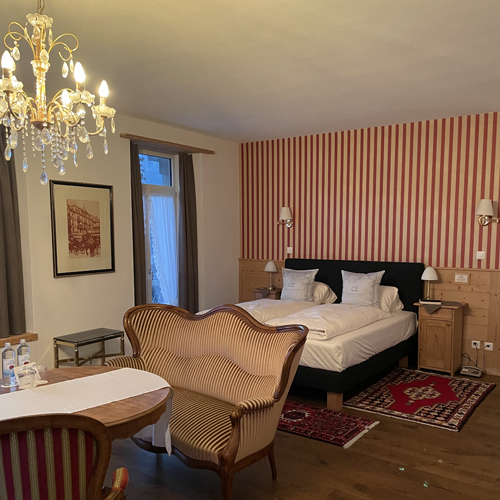 Seit 2019 ist das Hotel Erwachsenen ab 16 Jahren vorbehalten. Mir hat der Vintage-Charme gut gefallen, die Belle Époque Vergangenheit der Hotels ist mit alten Aufnahmen, zahlreichen Utensilien und Mobiliar aus diesen Zeiten überall spürbar! Die Zimmer sind im Vintage oder Alpen-Stil eingerichtet, die Lage immer noch zentral und der Bergblick spektakulär, besonders von der Suite mit Dachterrasse…
