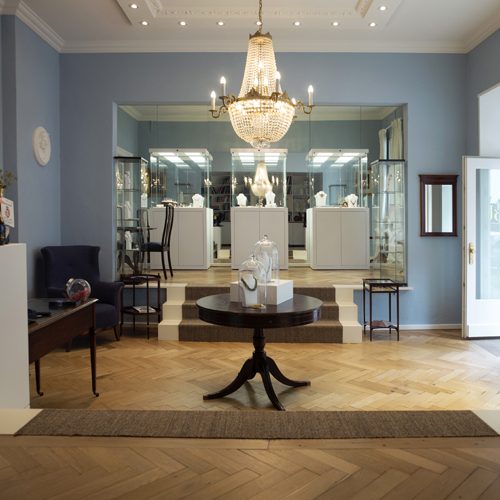 Die Inhaberin, Christiane Scharrer-Sieb, arbeitete zuvor mehrere Jahre als Leiterin für Schmuck und Uhren bei bedeutenden Auktionshäusern. 2011 beschloss sie, sich selbständig zu machen und gründete „Die Halsbandaffaire“. Online habe ich dort schon ein Geburtstagsgeschenk für meinen Mann erstanden – ein paar Manschettenknöpfe. Es kam alles sehr schön verpackt an und das Wichtigste – sie haben ihm gefallen (uff!).