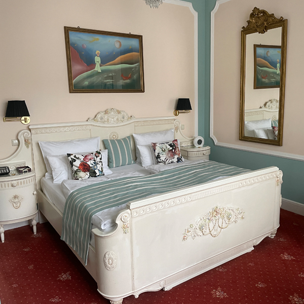 Nicht nur für Fans der bis heute beliebten Romanfigur des französischen Autors Antoine de Saint-Exupéry ist das zentral gelegene Hotel in Baden-Baden eine gute Wahl. Die Zimmer und Suiten des Hauses sind im klassischen Stil eingerichtet mit liebevollen nostalgischen Bildern und Accessoires – darunter natürlich auch einige zum Thema des Namensgebers. Wer nicht im Hotelzimmer verweilen möchte, kann in der Bibliothek mit angrenzendem Billiard-Raum lesen oder einen Drink genießen.