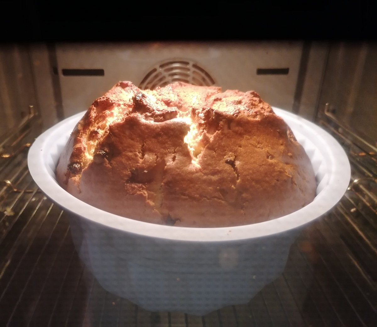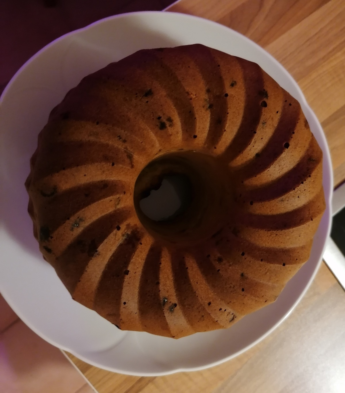 Zwischendurch hatte ich etwas Angst, dass der Kuchen verbrennen könnte, die Holzstäbchenprobe hat aber gezeigt, dass der Kuchen nach 60 Min. noch nicht durchgebacken war. Bei mir brauchte er tatsächlich 90 Min.
