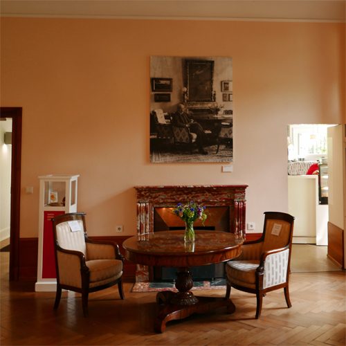 In Berlin Wannsee kann man seine Villa besichtigen. Tatsächlich liegt sie in herrlicher Lage direkt am See – vom der Terrasse, auf der man jetzt Kaffee trinken kann, sieht man immer wieder einmal ein Segelboot vorbei schweben. Das Landhaus war für den Sommeraufenthalt gedacht und wurde nach seinen Vorstellungen 1909/10 für ihn und seine Familie erbaut.