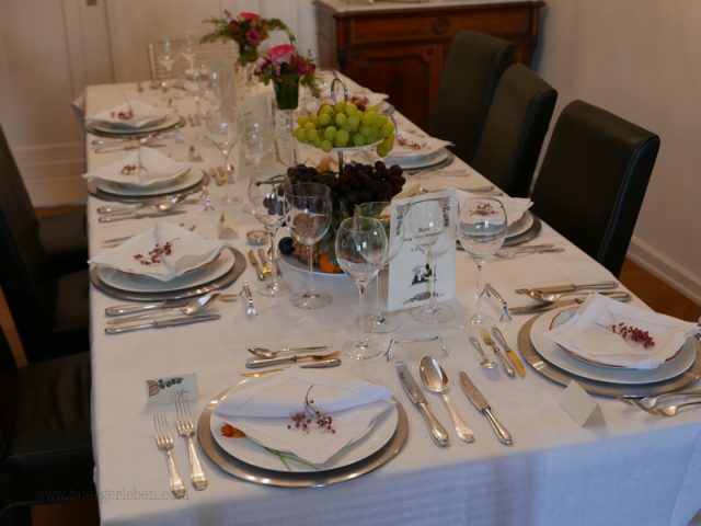 In diesem Artikel hatte ich das Tischdecken für ein Essen in der Bürgerleben-Zeit beschrieben. Wir haben gesehen, auch früher gab es verschiedene Auffassungen und Moden gegenüber der Platzierung von Besteck, Gläsern und was sonst noch auf dem Tisch Platz findet, ob Getränke oder Blumenschmuck. Trotz allem gab es Grundregeln, was das Besteck und die Anordnung der Gläser anging.