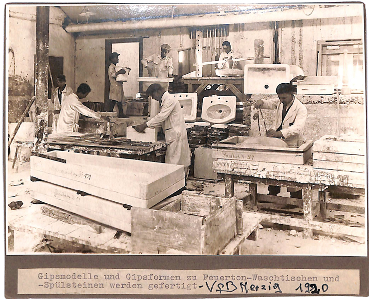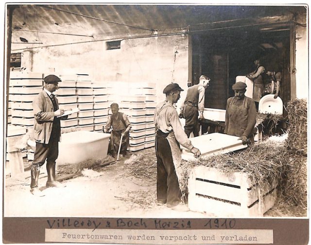 Nach diesem kleinen Exkurs in die Toiletten-, äh Klosettgeschichte, ein Blick, wie es in der Firmengeschichte weiterging. Wie bei den meisten Industriebranchen war der 1. Weltkrieg gleichfalls für Villeroy & Boch eine große Zäsur. Neben dem Nachfragerückgang, der eine Stillegung der Produktion zur Folge hatte, wurde vor allem die deutsch-französische Verbindung der Firma schwierig, auch hinsichtlich der Produktionsstätten. Das Saargebiet war vom deutschen Reich abgetrennt. So erwarb man für den deutschen Markt Produktionsstätten in Breslau (heute Wroclaw, Polen) und in Mehlem bei Bonn, wo ab Mitte der 20er Jahre Sanitärkeramik hergestellt wurde.