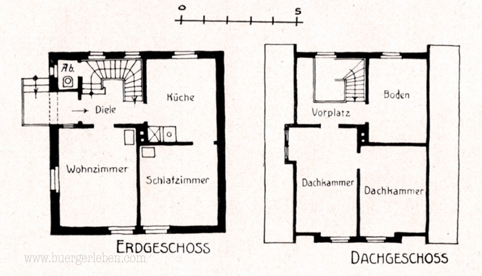 In Grundrissen von größeren Häusern und Wohnungen sind die Toiletten (damals Aborte oder Klosetts genannt) oft separate kleine Räume in der Nähe des Eingangsbereichs. Hatte man ein Klosett im Bad, gab es sicherlich noch ein weiteres für Gäste und das Personal.