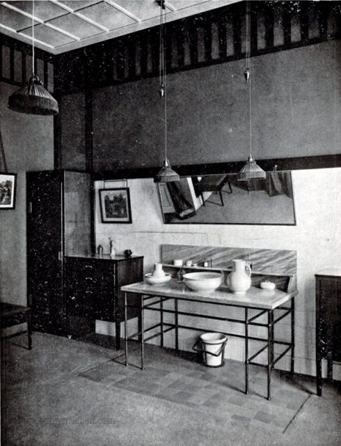 Werfen wir einen Blick in das Badezimmer, so sieht es gar nicht so anders wie unsere heutigen Zimmer aus – na gut, etwas altmodisch…Im Text heißt es weiter: