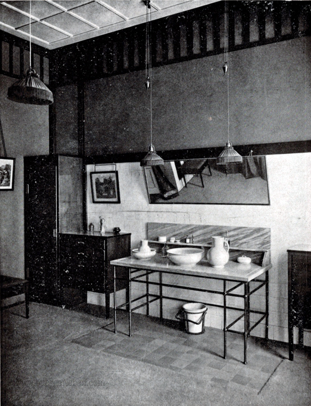 „Das Fenster wird mit matten Scheiben versehen, der Fußboden muß, um jedes Durchlaufen von Wasser zu verhindern, aus Zement, Asphalt oder Mettlacher Fliesen sein…“
