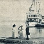 Der »humoristische Rheinländer« mit der Überschrift »Fräulein Bock im Hosenrock« aus dem Jahr 1911 könnte dabei als Vorlage gedient haben«.[4] Vor dem Hintergrund einer weitläufigen Flusslandschaft posiert ein junges Paar, das im Begriff ist, zu einer Bootstour aufzubrechen. Ein Schiff ist zwar nicht in Sicht, aber immerhin hält der gut gekleidete Herr, wenn auch recht ungeschickt, schon ein Paddel in der Rechten. Seine Kleidung – Jackett mit Weste, Oberhemd mit steifem, hohem, vorne offenen »Vatermörder« und ein eleganter Hut – ist zwar wenig dafür geeignet. Aber ihm kommt wohl weniger die Rolle des Sportlers als die des Liebhabers zu, der die Partnerin lächelnd fixiert. Vermutlich gefällt ihm der Hosenrock, der – wie der Zudruck im Gegensatz zur Fotografie erklärt – den Blick auf ihre Beine »fast bis zum Knie« freigibt: