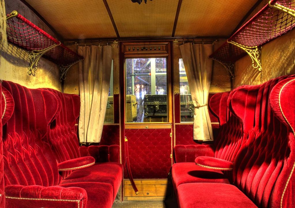 In der 1. Klasse lehnte man sich im Abteil gemütlich in weinrote Polster, über den Sitzen waren plüschige Leselampen mit Fransen, das ganze Abteil war an den Wänden samt Gepäckablagen im Jugendstil gestaltet.
