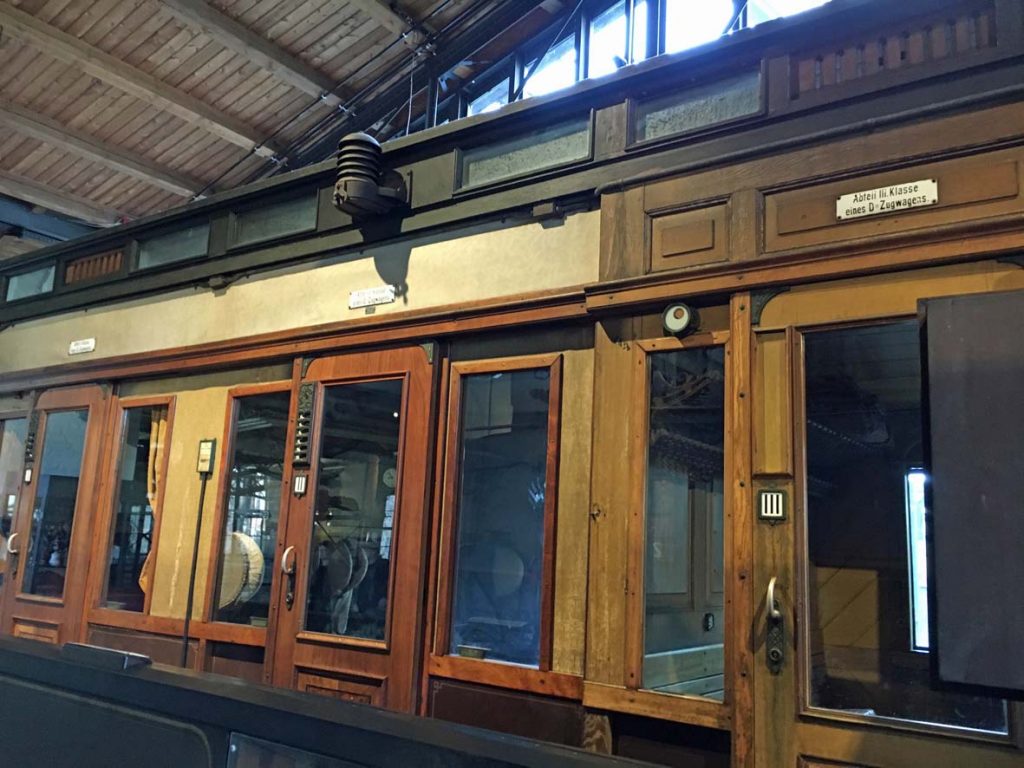 Zwischen den Städten verkehrten die größeren und schnelleren D-Züge – hier kann man einen Musterwaggon mit den 3 Klassen besichtigen, welche damals existierten.