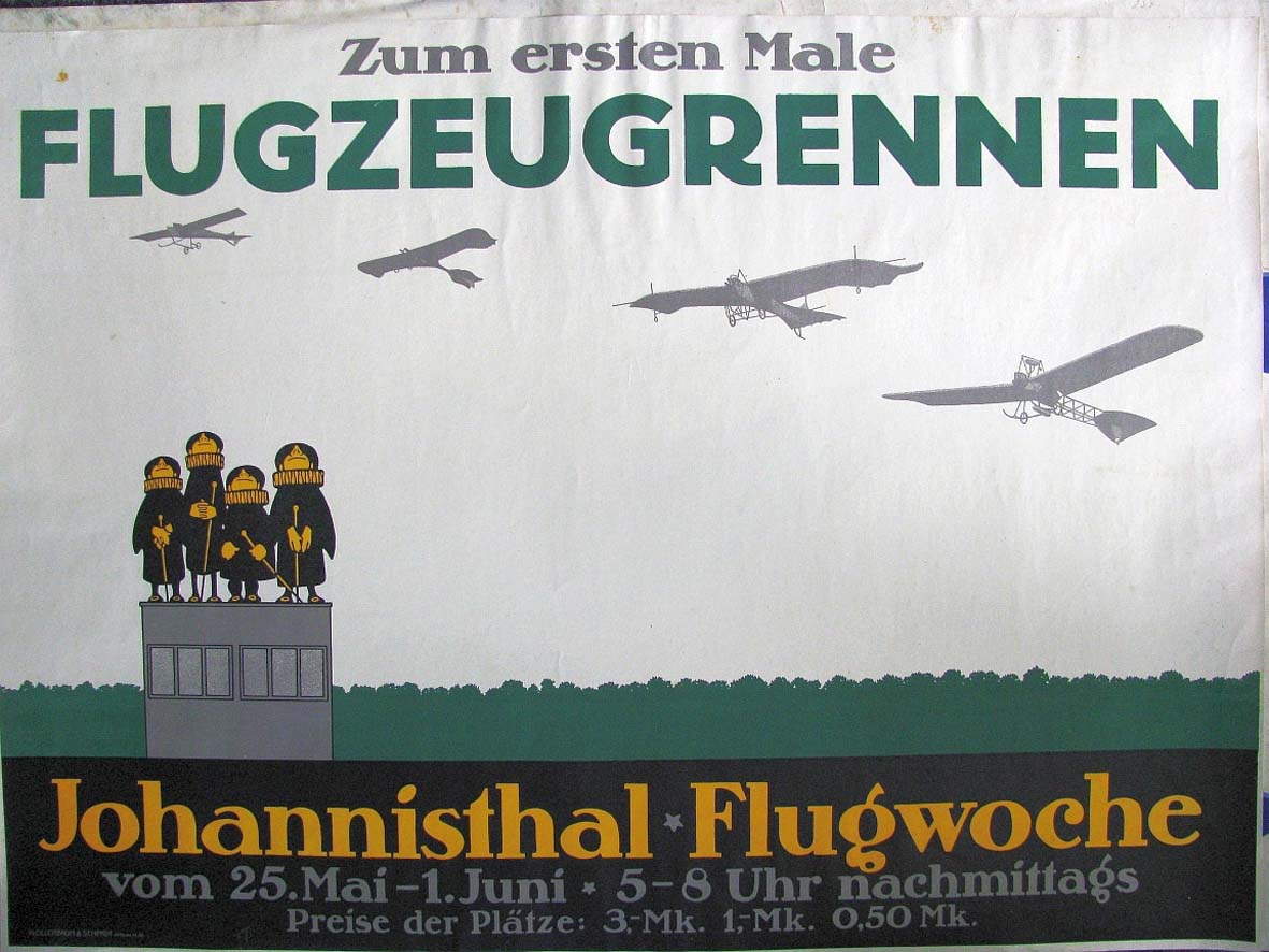 Dort starteten und landeten die Aviatiker. Bei Wettbewerben versammelten sich bis zu einer halben Million Menschen, um ihnen zuzuschauen und auch sonst war das Interesse groß, wie Berichte, Fotos und Plakate der Ausstellung bezeugen. Hersteller von Flugzeugen siedelten sich rund um den Flugplatz an, z.B. Rumpler und Albatros.