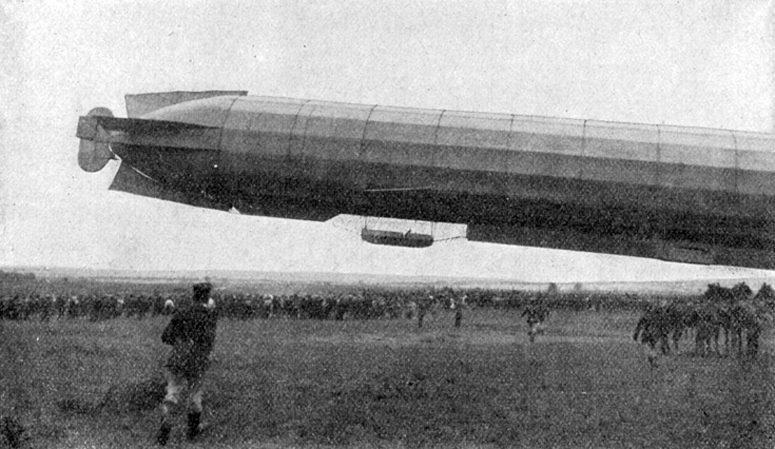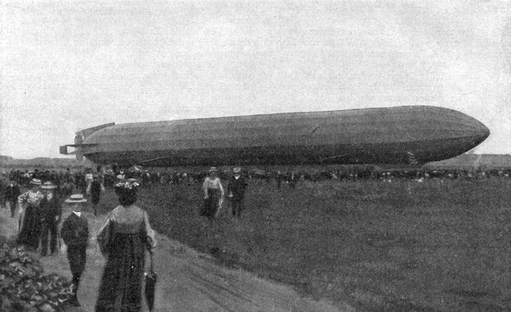 Das Luftschiff landete gegen 8 Uhr morgens, die Katastrophe trat gegen 3 Uhr nachmittags ein. Das Luftschiff hatte eine Länge von 128 Metern, eine Länge, die die Höhe der Türme der Münchner Frauenkirche noch um ein Viertel überragt. Der Durchmesser des Luftschiffes betrug 11 ½ Meter. Es bestand aus 16 einzelnen Kugelballons, die durch ein Aluminiumgerüst miteinander verbunden waren. Das Ganze wurde durch Ballonstoff zur Einheit verbunden. Die 16 Einzelballons wurden mit dem leichtesten Gas, nämlich mit Wasserstoffgas gefüllt. Das Luftschiff, das eine Maximalgeschwindigkeit von 50 Kilometern in der Stunde erreichte, kostete 350 000 Mark und jede einzelne Füllung 8000 Mark.
