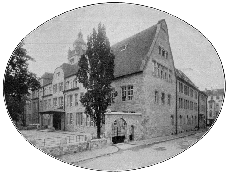 Unsere alten deutschen Universitäten fanden bei ihrer Gründung ihr Heim meist in alten verfügbaren Gebäuden, in Schlössern und Klöstern. Die Berliner Universität zum Beispiel im Palais des Prinzen Heinrich, des Bruders Friedrich des Großen. Es war damals für große Bauten kein Geld vorhanden, und außerdem schienen für „Schulzwecke“ die alten Schlösser und Klöster vortrefflich geeignet. Unter dem Einfluß Schinkels versuchte man dann auch nach außenhin die Bestimmung zu kennzeichnen, der diese Stätten geistiger Bildung dienten. Man schuf den antikisierenden Akademiestil. So entstand 1834 das Universitätsgebäude Halles und das Universitätsgebäude zu Leipzig.