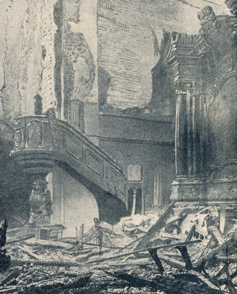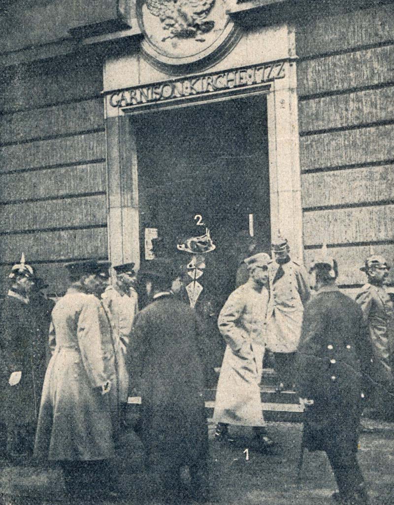 Nicht nur die Tageszeitungen, auch alle wöchentlichen Gazetten berichteten über diesen verherrenden Brand vom 13. April 1908 mit entsprechenden Bildern. Die Garnisonkirche brannte komplett aus. Schuld war wohl ein defekter Motor der Orgel, der überhitzte. Auch der Kronprinz begegnet uns wieder wie in den Januar und März-Ausgaben – dieses Mal (zusammen mit der Kronprinzessin) begutachtet er die Folgen des Brandes. Nein, mangelnde Aktivität kann man ihm nicht vorwerfen.