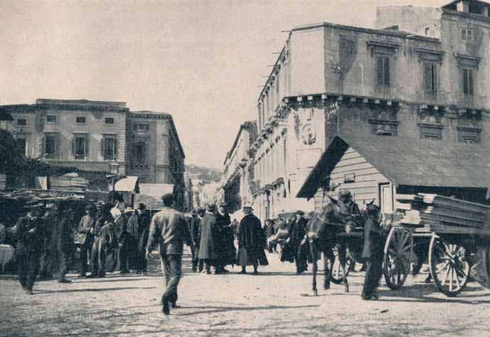 Die Regierung beabsichtigt, den in überraschender Zahl Wiederkehrenden ein neues Stadtviertel außerhalb der Trümmerstadt auszuweisen, aber es wird vornehmlich von unternehmungslustigen Fremden bevorzugt. Die Messinaer selbst ließen sich aus ihrem Messina nicht vertreiben und überall zwischen traurigen Ruinen, auf Plätzen und den breiteren, unter dem Schutt begrabenen Straßen sind ganze Reihen von Zelten, Flugdächern und Holzhütten entstanden, roh zusammengenagelt und ohne jedwege Einrichtung…So rasch erfolgte die Wiederkehr der Überlebenden, daß sie sich gar nicht die Zeit nahmen selbst in den wichtigsten Straßen den Schutt, der sie sie in stockwerkhohen Hügeln füllt, beiseite zu schaffen. Mitten über sie hinweg, zwischen den Trümmern von Möbeln, Bildern, Balkonen, hervorstehenden Tragschienen, geborstenen Röhrenleitungen, Balkenstücken hindurch, auf und ab werden Fußwege festgetreten, auf Schutthügeln selbst Baracken erbaut und in diesen Geschäfte eröffnet. Am lebhaftesten war diese Barackenbauwut im Süden der Ruinenstadt, auf der großen Piazza Cairoli und den» Viale S. Martino, wo bereits Hunderte von Baracken mit Kaufläden der verschiedensten Art stehen, dazu Schnapsläden, Speisehäuser, Bureaus von Rechtsanwälten und Ärzten, Barbierläden, endlich Fleisch-, Fisch und Gemüsemarkt mit dem lebhaftesten Verkehr dazwischen.