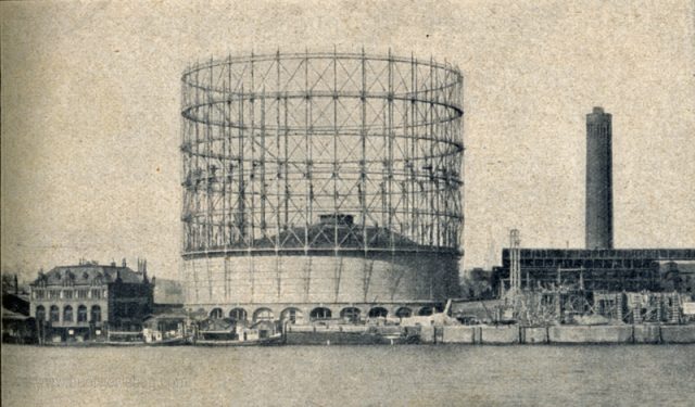 Auf dem Gasbrook, einer ehemaligen Elbinsel, passierte das Unglück. Von 1845 bis immerhin 1976 befand sich Hamburgs ältestes Gaswerk dort. Im Rahmen einer Kapazitätserweiterung wurde dort 1909 ein nicht umhüllter Teleskop-Gasspeicher errichtet, mit 71 Meter Höhe der derzeit größte Gasometer in Europa! Er war erst 10 Tage in Betrieb und zur Hälfte gefüllt, als am 7. Dezember bei der weiteren Befüllung die Eisenträger der Bodenkonstruktion zusammenbrachen.