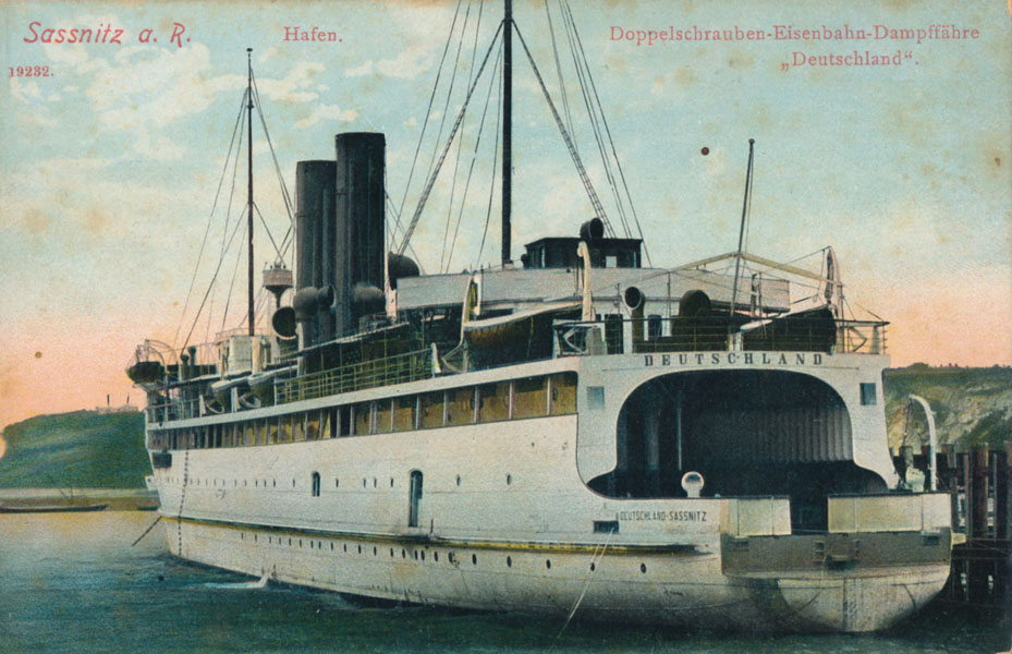 Bald wurden zwei tägliche Abfahrten notwendig und aufgrund des hohen Verkehrsaufkommen 1907 vertraglich vereinbart, die Postfähre in eine Eisenbahnfähre umzuwandeln. Der Bahnhof Saßnitz-Hafen wurde errichtet und Anfang Juli 1909 war es soweit: Die ersten Züge rollten direkt auf die Fährschiffe, vier an der Zahl. Die Zeitschrift „Daheim“ erzählt dazu: