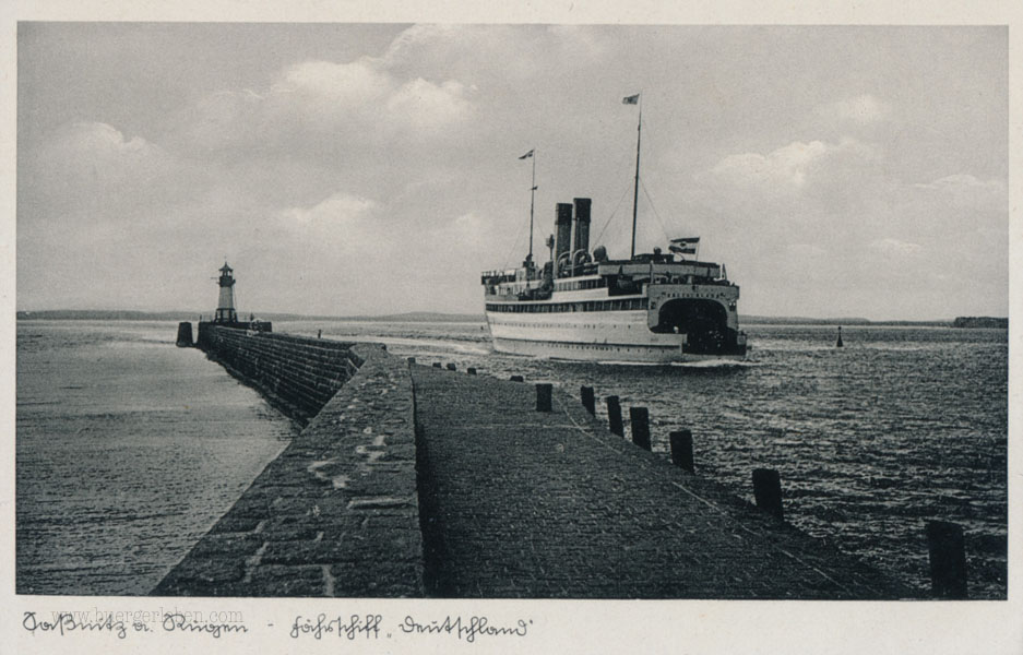 Die folgende Seite führt den Lesern die neue Fähre „Deutschland“ vor, die seit dem 7. Juli d.J. Saßnitz und Trelleborg verbindet. Es sind im ganzen vier Fähren erbaut, und zwar zwei – die „Deutschland“ und die „Preußen“ – von deutscher Seite, zwei weitere – die Drottning Viktoria“ und „Koning Gustav V.“ – von schwedischer Seite. Die Fähren haben 4200 Tonnen Wasserverdrängung, sind 112,5 Meter lang und 16,5 Meter breit, haben einen Tiefgang von 4,9 Meter und vermögen 600 Tonnen Ladung zu nehmen.