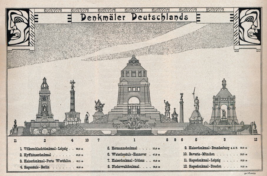 In der Zeitschrift Daheim erschien 1908 eine Graphik mit den höchsten Denkmälern – auch das geplante Völkerschlachtdenkmal war schon dabei, wie man sieht: